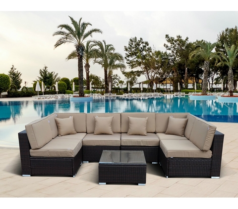 Мы хотим предложить вам приобрести подушки, предназначенные для комплекта садовой мебели , такие подушки выполнены в бежевом цвете, при этом подушки для сидения и спинки являются раздельными. Подойдут такие подушки для модульного дивана в сборке длина которого составляет 284 см, ширина 142 см, глубина 78 см, а высота 66 см. Наполнитель поролон + синтепон