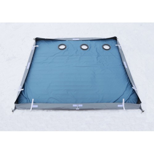 Дно гидро-термоизоляционное располагается на поверхности льда и монтируется надежными ввертышами, на которые накидываются металлические кольца. Хранить полотно необходимо в сухом и чистом состоянии.
