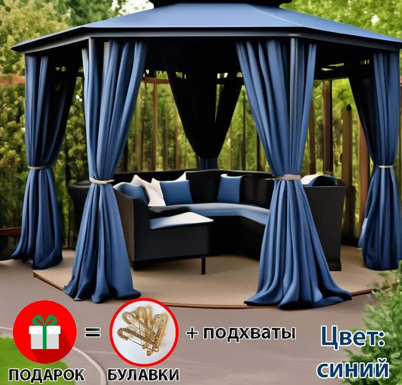 Краткое описание «Уличные шторы для шестигранной беседки из Оксфорда синий»